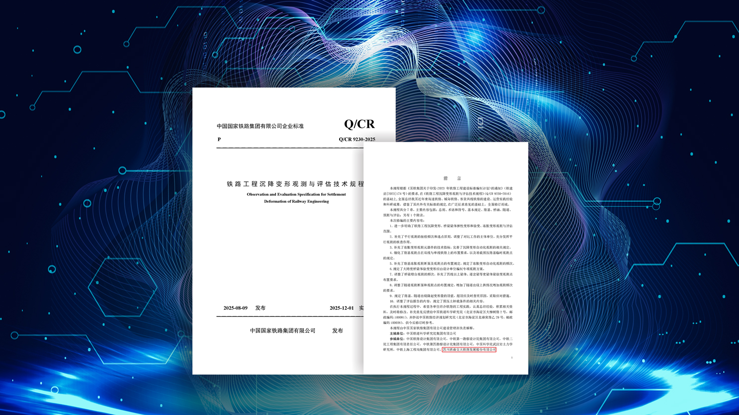 公司参与编制的又一项企业标准正式发布实施 [2025-12-02]2025年12月1日,sunbet申搏参与编制的中国国家铁路集团有限公司企业标准《铁路工程沉降变形观测与评估技术规程》(Q/CR 9230—2025)获准发布并实施。 该规程适用于新建和改建铁路工程沉降变形的观测与评估,对统一铁路工程建设期间沉降变形观测与…